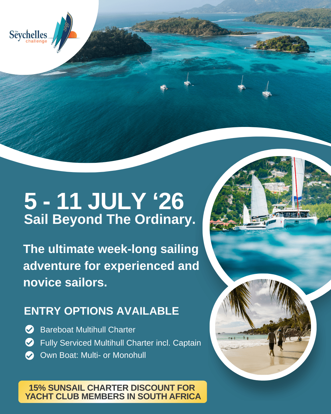 Entries are officially open, and Sunsail, the event’s official charter partner, is offering members of South African yacht clubs a 15% discount on all charter bookings for the 2026 Seychelles Challenge.